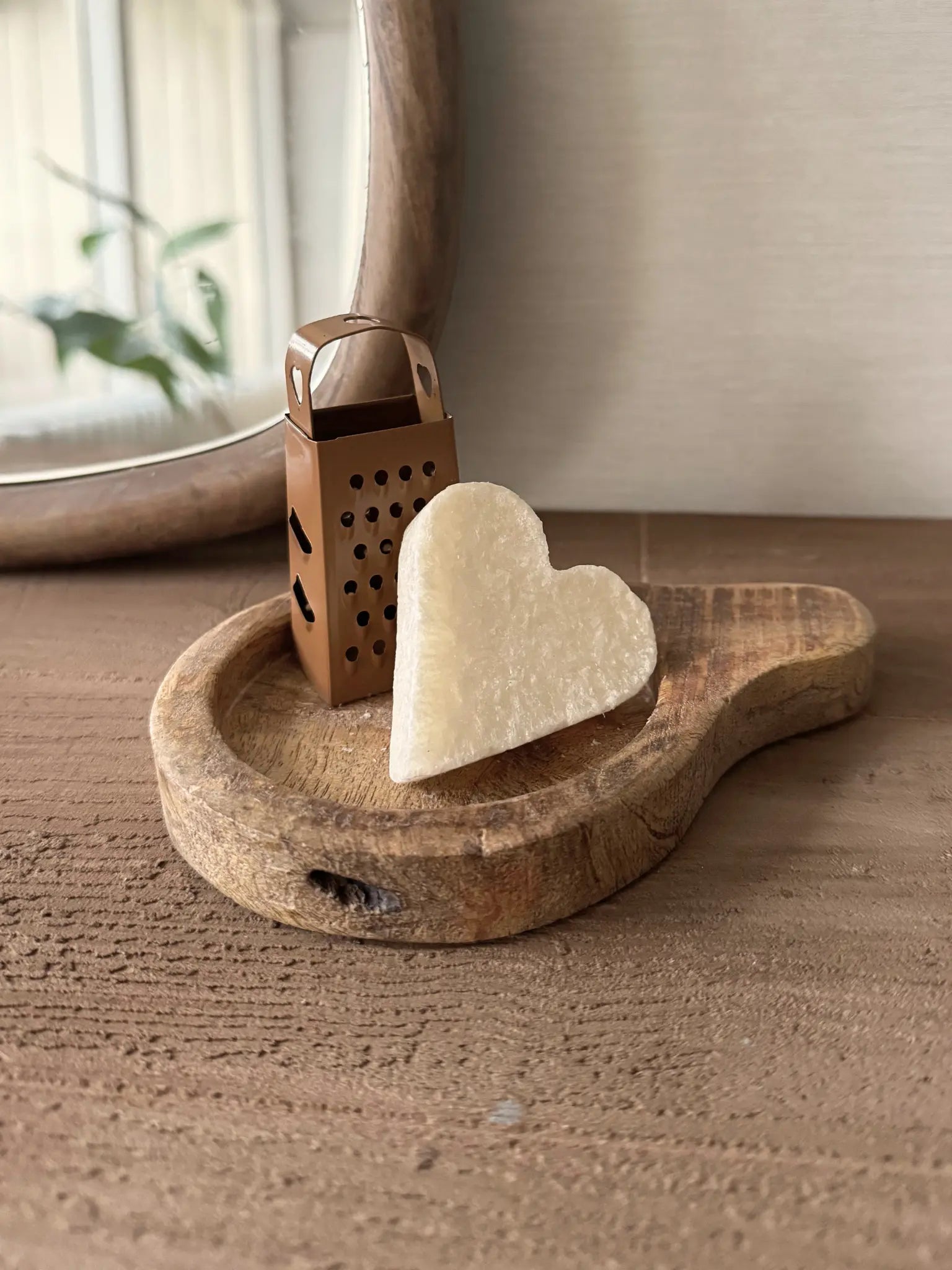 Dit ambersetje brengt meteen een zachte en warme geur in huis. Het houten schaaltje heeft een naturel uitstraling en past mooi in elk interieur. De bruine rasp en het amberblokje in hartvorm zorgen samen voor een sfeervol accent dat leuk staat in de badkamer, op een kastje of naast het bed. Door zachtjes over het blokje te raspen verspreidt de geur zich subtiel door de ruimte.