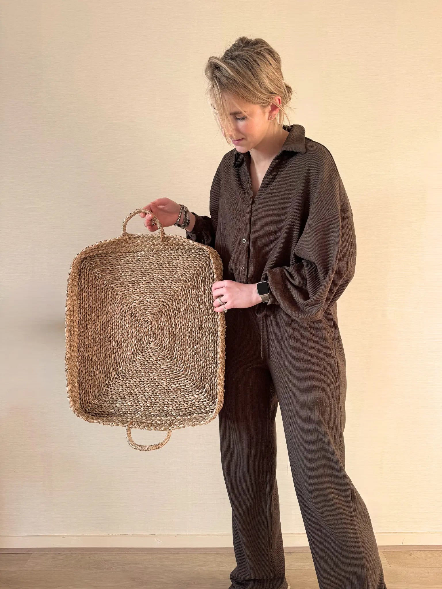 Dit dienblad van zeegras geeft je interieur een natuurlijke en rustige uitstraling. De gevlochten structuur en de zachte naturel tint maken het perfect voor het stylen van kaarsen, vazen of kleine decoraties. Ook op een keukenblad, eettafel of salontafel staat het dienblad prachtig. Het zeegras voelt licht maar stevig aan en brengt meteen wat warmte en sfeer in huis. Een ideaal item als je houdt van een rustige en natuurlijke look.