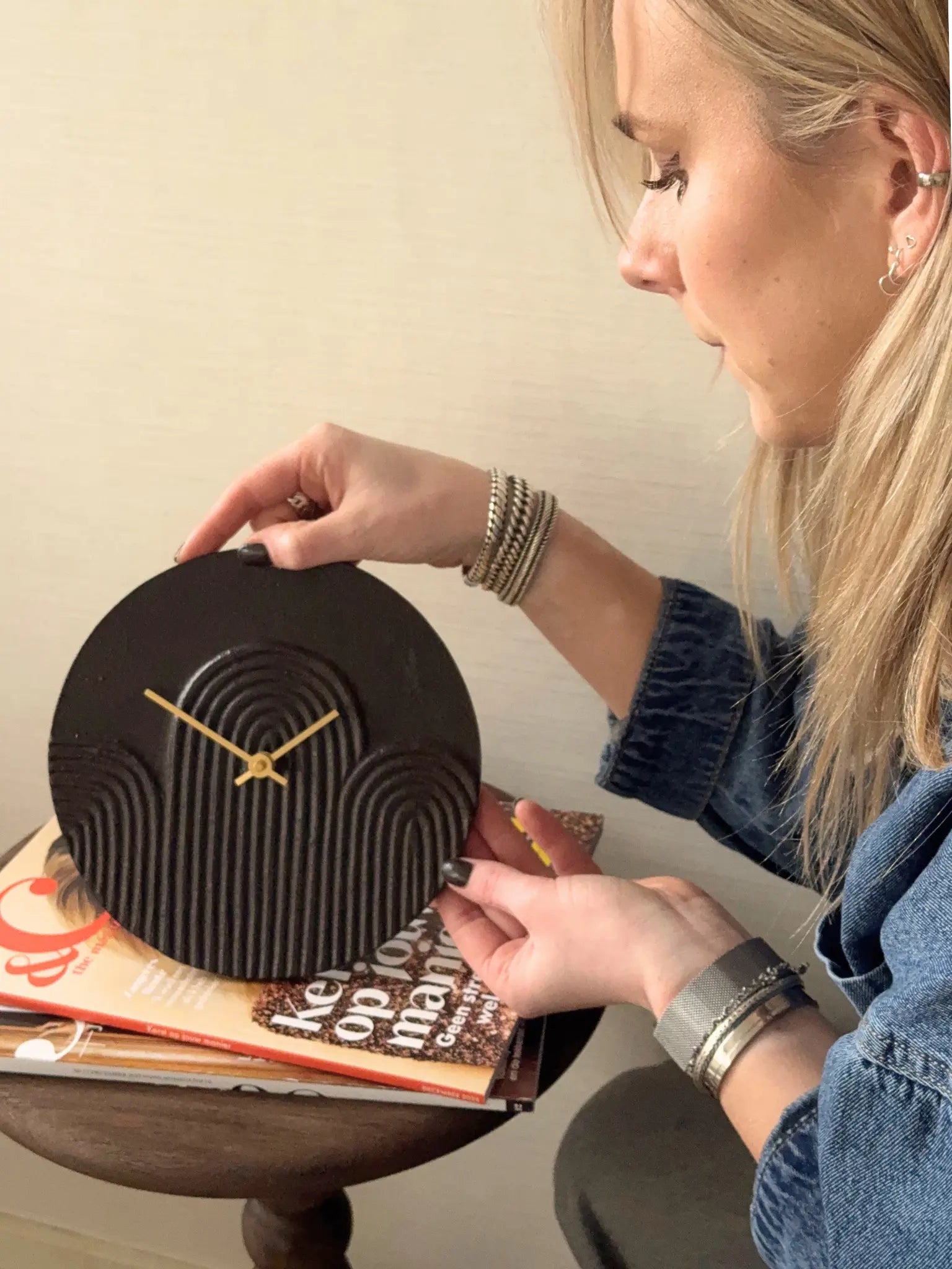 De Gwenna klok voegt een stijlvol en krachtig detail toe aan je interieur. De donkerbruine kleur en het strakke ontwerp maken hem perfect voor in de woonkamer, keuken of werkruimte. Je kunt hem neerzetten of ophangen, waardoor hij altijd een passende plek vindt. De duidelijke wijzers en het compacte formaat zorgen ervoor dat hij opvalt zonder overheersend te zijn. Een mooie mix van functionaliteit en sfeer die past bij een rustige en moderne uitstraling in huis.