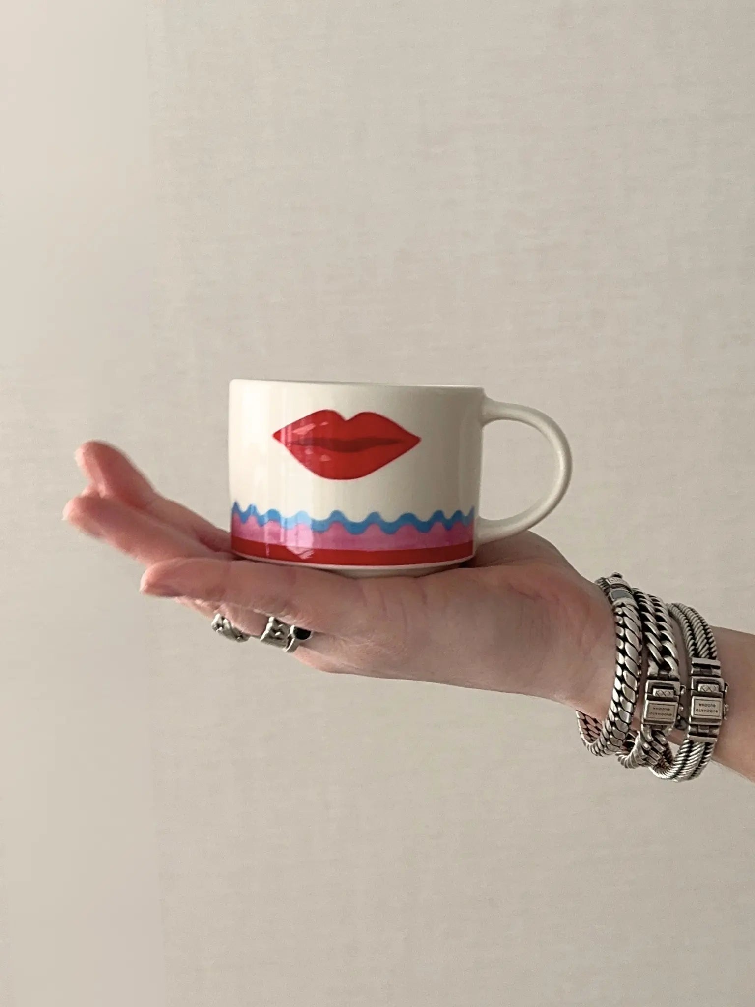 Koffiemok Amore is een vrolijke en sfeervolle mok die elk koffiemoment net wat leuker maakt. De speelse kleuren en het liefdevolle detail geven de mok een warme uitstraling die meteen opvalt op tafel of in een open kast. Dankzij het oor ligt de mok fijn in de hand en is hij perfect voor koffie, thee of een cappuccino. Het keramiek voelt stevig aan en maakt deze mok niet alleen leuk om te zien, maar ook prettig in gebruik. Een fijne mok om je dag mee te beginnen of om cadeau te geven.