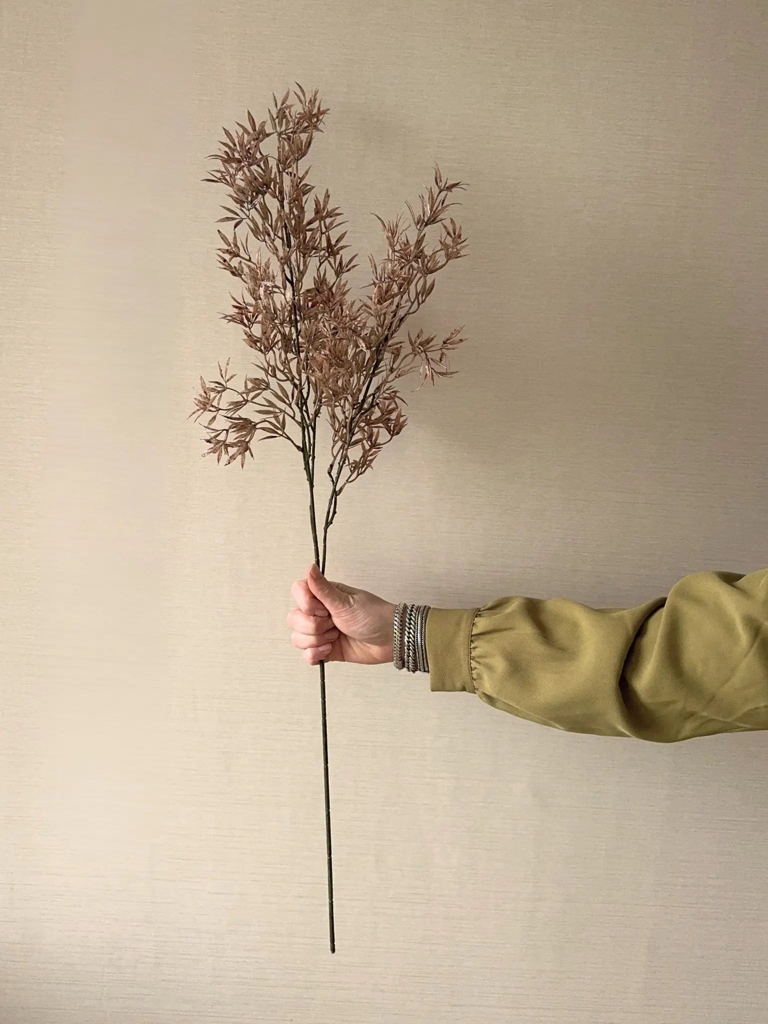 Deze kunstbloem Nandina van Light & Living brengt een warm en sfeervol accent in huis. De mix van bruine en rode tinten geeft de bloem een rijke en herfstachtige uitstraling die mooi past in een vaas, schaal of decoratief hoekje. Door de compacte en volle vorm is hij ideaal om los te stylen of te combineren met andere kunstbloemen. Volledig onderhoudsvrij en altijd mooi van kleur, perfect als je wel sfeer wilt maar geen omkijken naar verzorging.