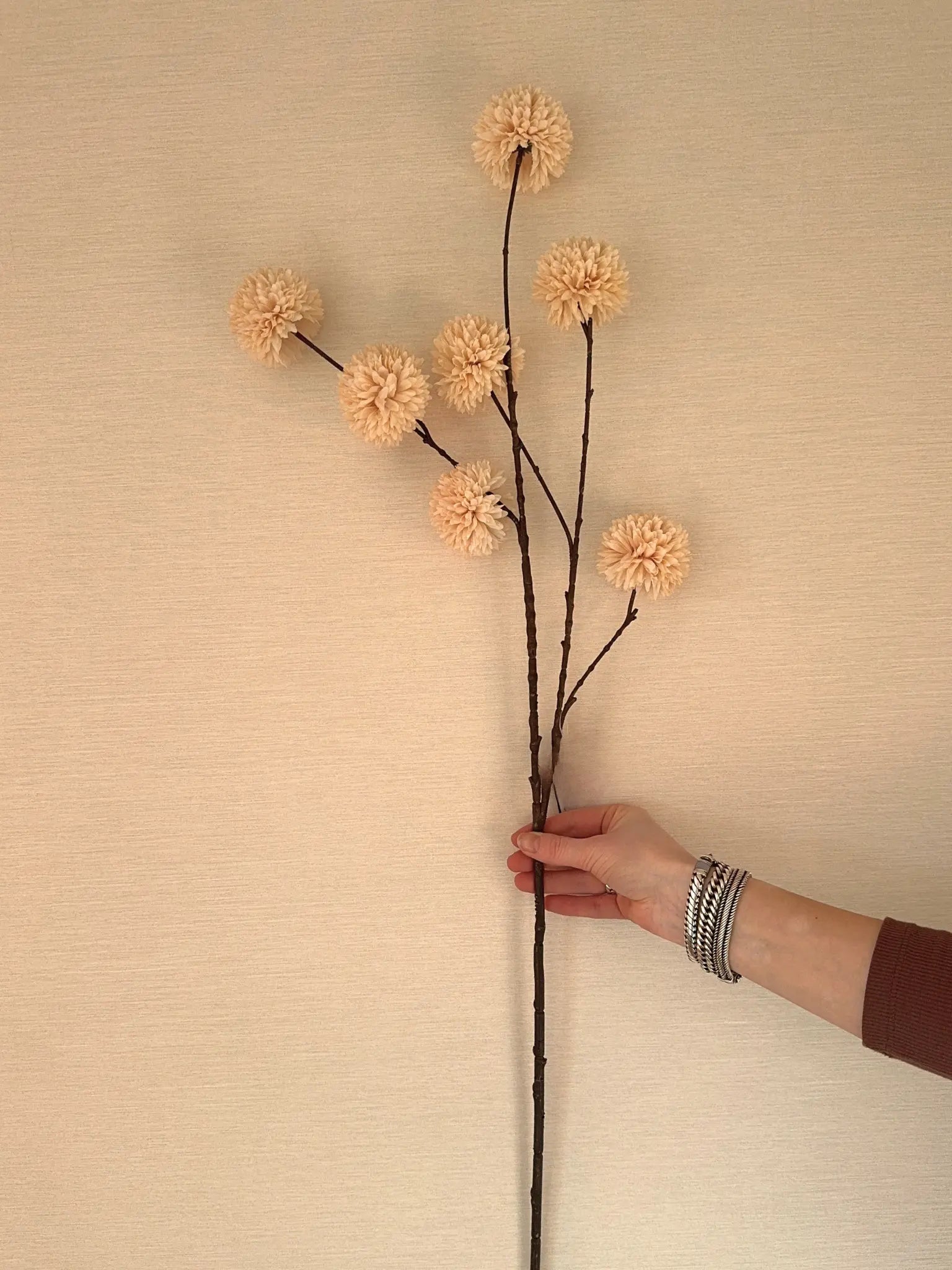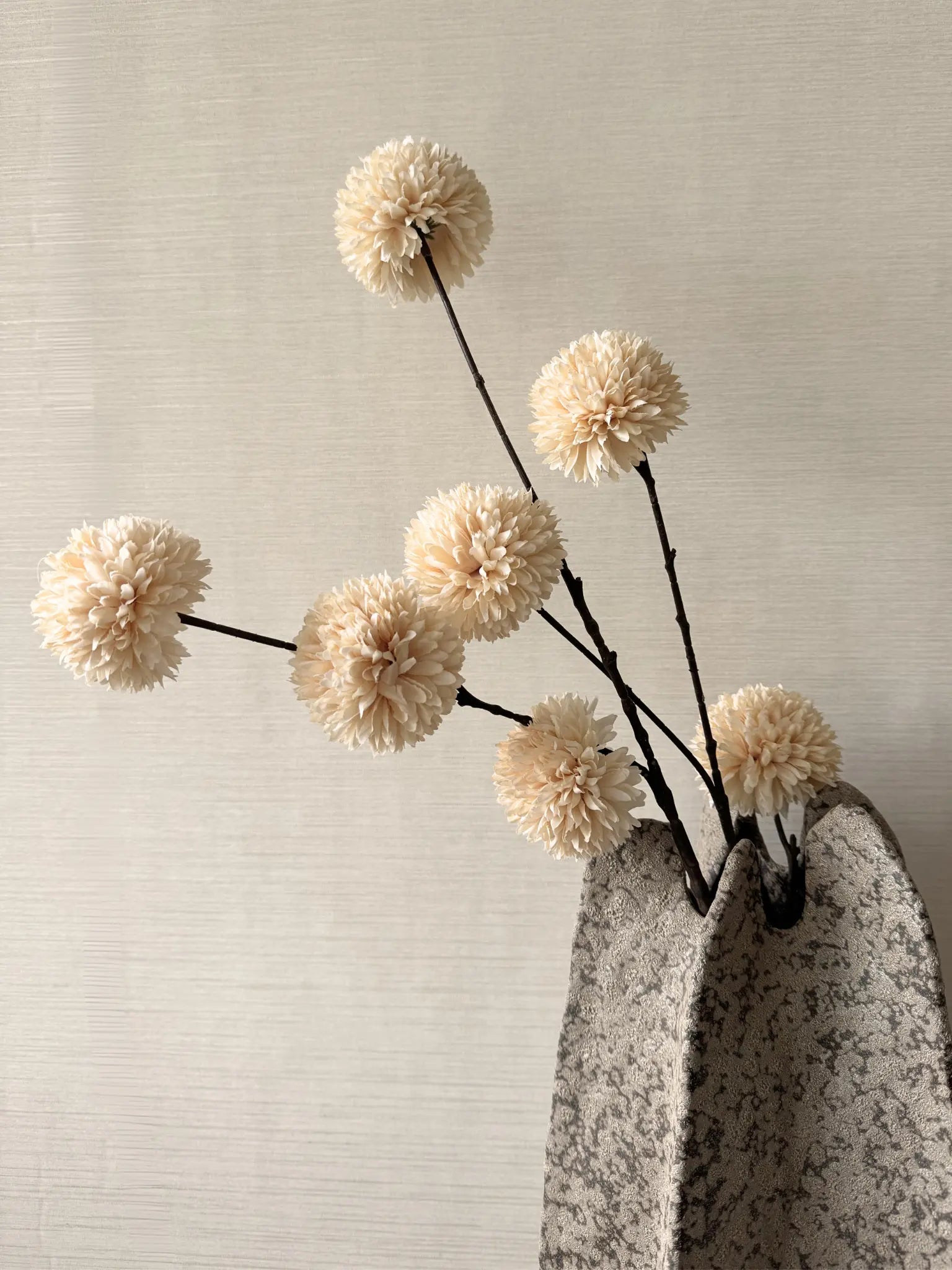 Dit kunstgroen pompom in crème is een stijlvolle en luchtige toevoeging aan je interieur. De zachte crèmekleur geeft een rustige en elegante uitstraling, terwijl de speelse pompomvorm zorgt voor een subtiel statement. Met zijn lengte van 98 cm is dit een perfecte tak om solo in een hoge vaas te plaatsen of te combineren met andere kunsttakken voor een voller geheel. Ideaal als je langdurig wilt genieten van groen in huis zonder onderhoud.
