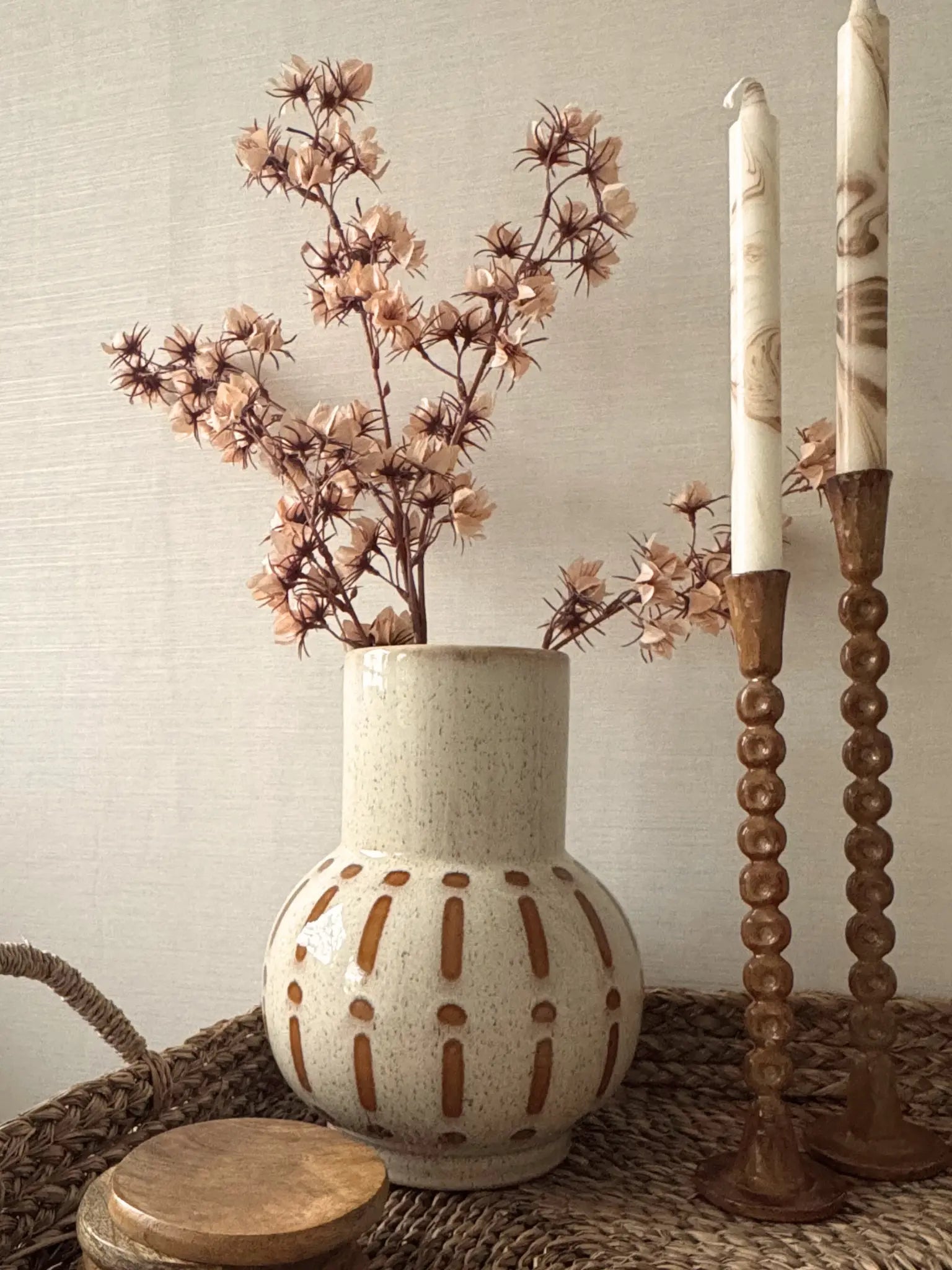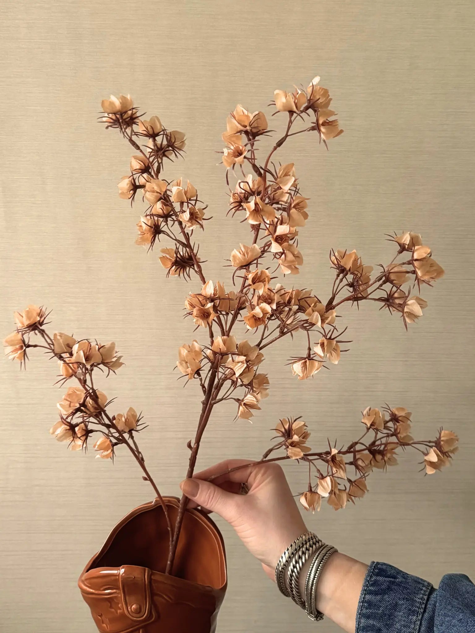 Deze kunstbloem van Clayre en Eef geeft je interieur een warme en zachte uitstraling. De combinatie van roze en bruin zorgt voor een natuurlijke en elegante look die mooi past in een vaas op een dressoir, tafel of in een gezellig hoekje. Met zijn lange, slanke vorm valt hij subtiel op en brengt hij meteen sfeer in huis. De bloem heeft geen onderhoud nodig en blijft jaar na jaar mooi van kleur, ideaal als je houdt van rustige tinten met een warm accent.
