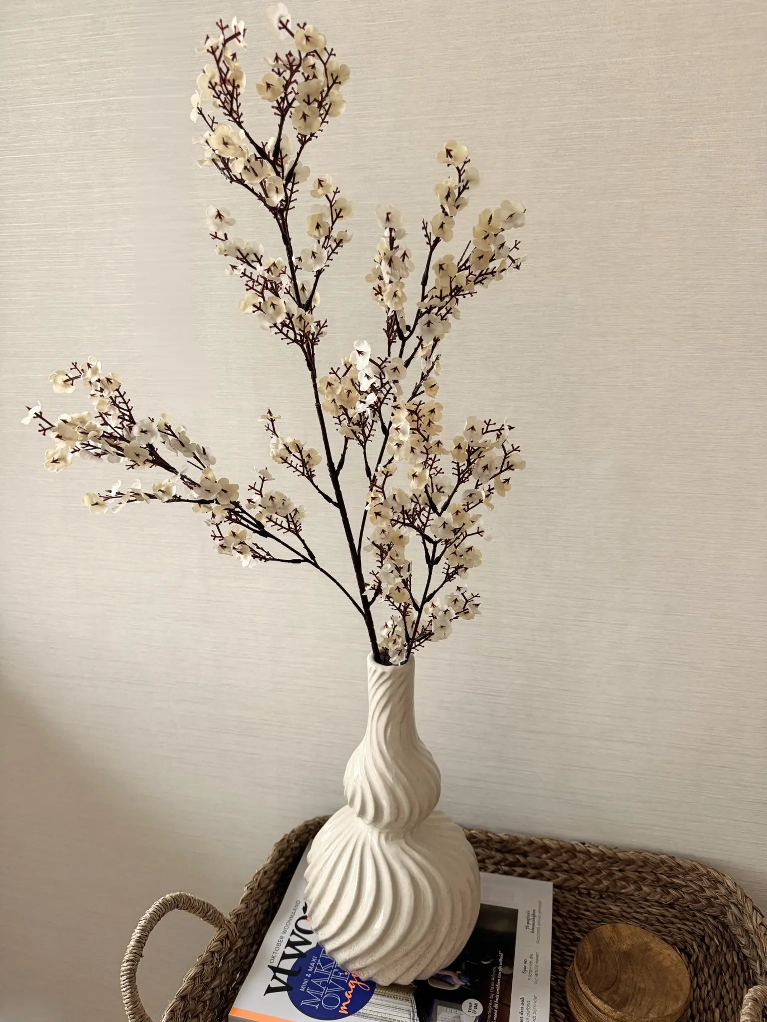 Deze kunstbloem van Clayre en Eef brengt een zachte en elegante sfeer in huis. De combinatie van wit en bruin geeft een natuurlijke en rustige uitstraling die mooi past in een vaas op een dressoir, tafel of in een gezellig hoekje. De bloem heeft een lengte van ruim een meter waardoor hij subtiel opvalt en direct sfeer toevoegt. Doordat hij geen onderhoud nodig heeft, blijft hij jarenlang mooi en fris. Een fijne decoratie als je houdt van rustige kleuren en natuurlijke vormen in huis.