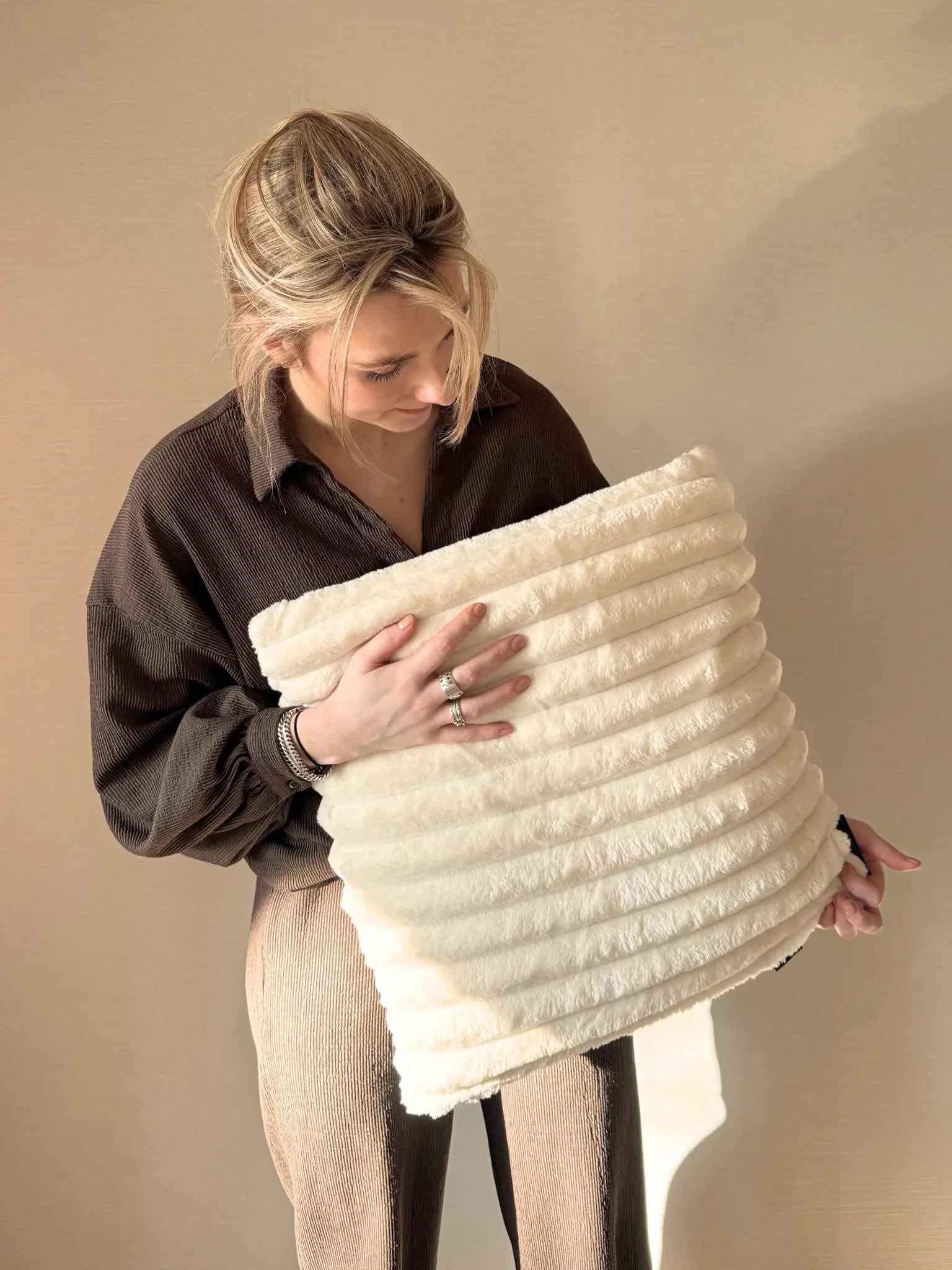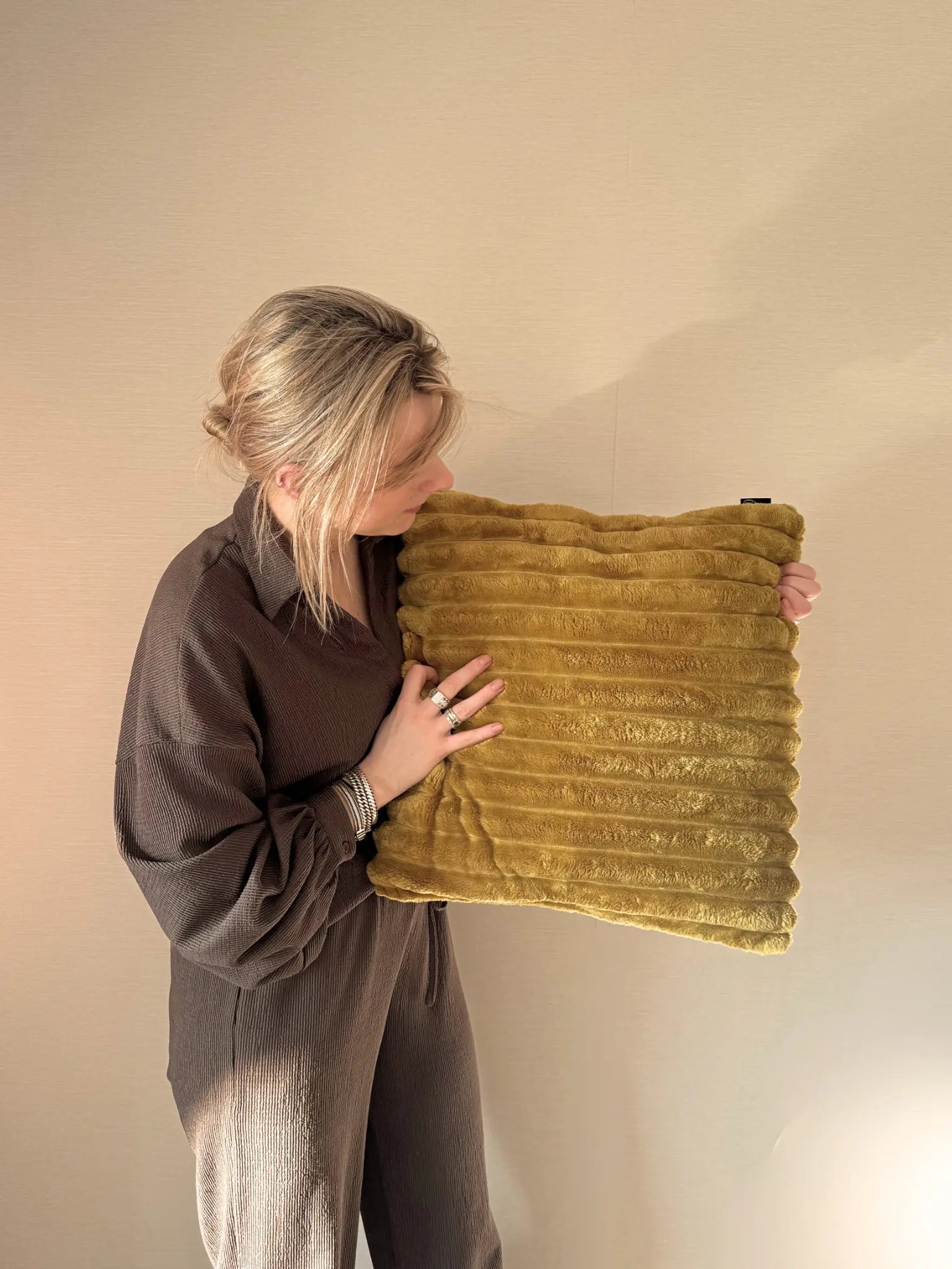 Kussen Lex is een fijn en tijdloos kussen dat direct sfeer brengt in huis. De zachte stof en het royale formaat van vijftig bij vijftig centimeter maken hem perfect voor op de bank, in een fauteuil of op bed. Door de rustige uitstraling past hij moeiteloos in verschillende interieurstijlen en is hij ideaal om te combineren met andere kleuren en vormen. Kussen Lex is verkrijgbaar in twee mooie tinten, zodat je precies kunt kiezen wat past bij jouw stijl of ze juist samen kunt gebruiken voor een warme en speelse mix.