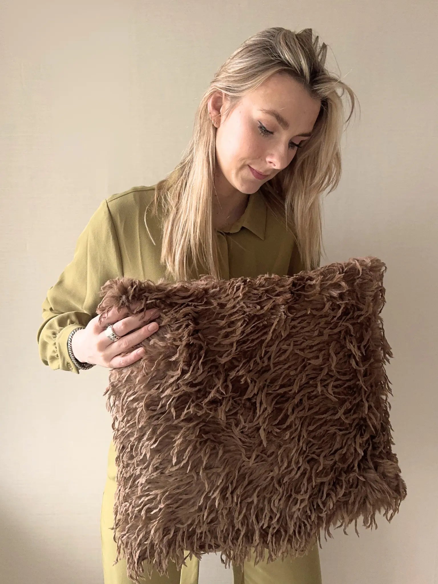 Kussen Allariz geeft je interieur een warme en stijlvolle uitstraling. De diepe bruine kleur zorgt voor een cosy en rijke sfeer die mooi staat op de bank, in een fauteuil of op bed. Het is een perfect kussen om te combineren met andere maten en kleuren. De stof voelt zacht aan en maakt elke zithoek meteen wat gezelliger en uitnodigender.