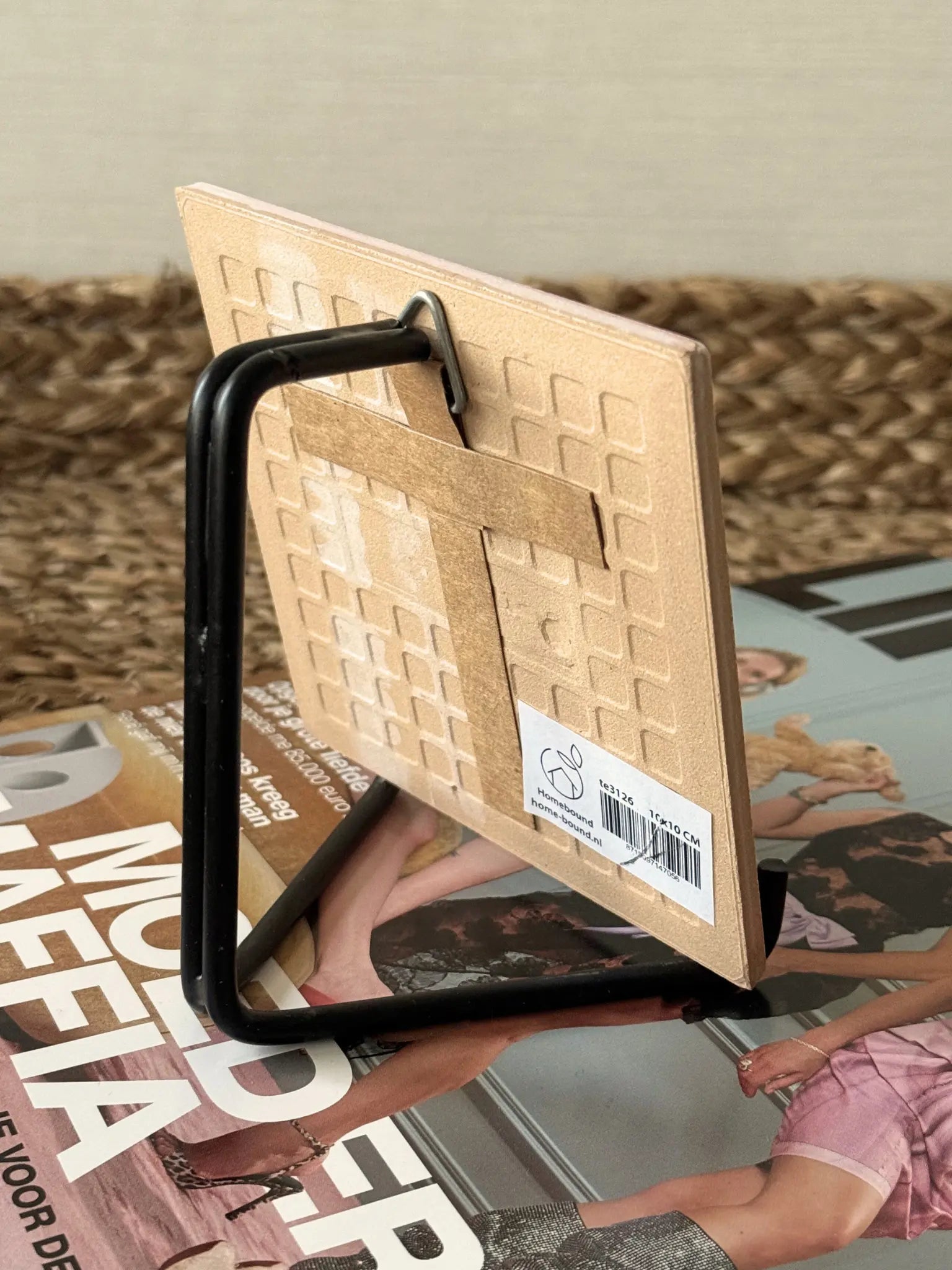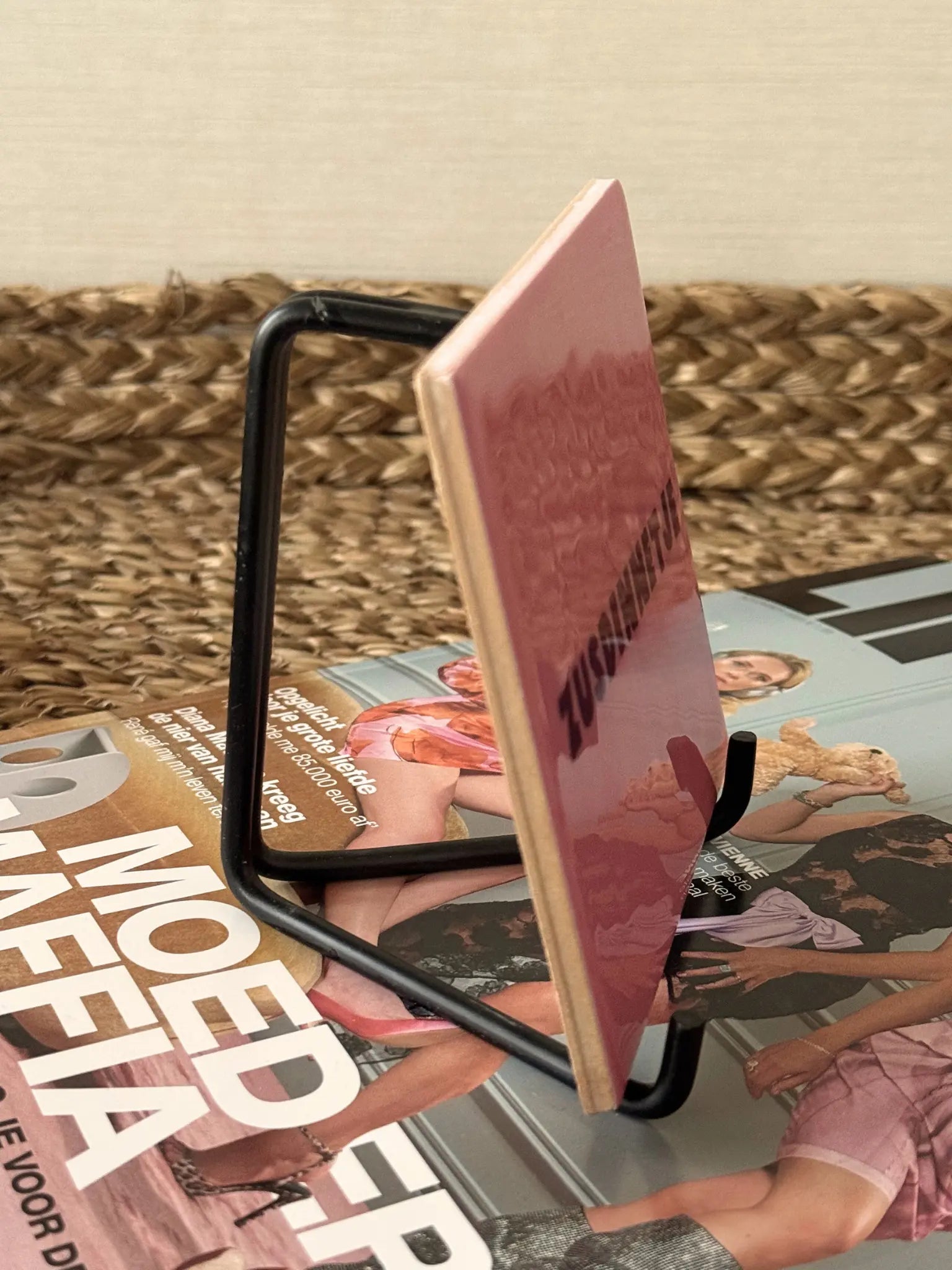 Dit zwarte metalen rekje geeft je favoriete tegeltjes een strak en stijlvol plekje in huis. De diepe zwarte kleur zorgt voor een moderne uitstraling en combineert mooi met zowel lichte als warme tinten. Door het compacte formaat past hij makkelijk op een plankje, kast of sidetable. Het rekje voelt stevig aan en laat een tegeltje meteen opvallen.