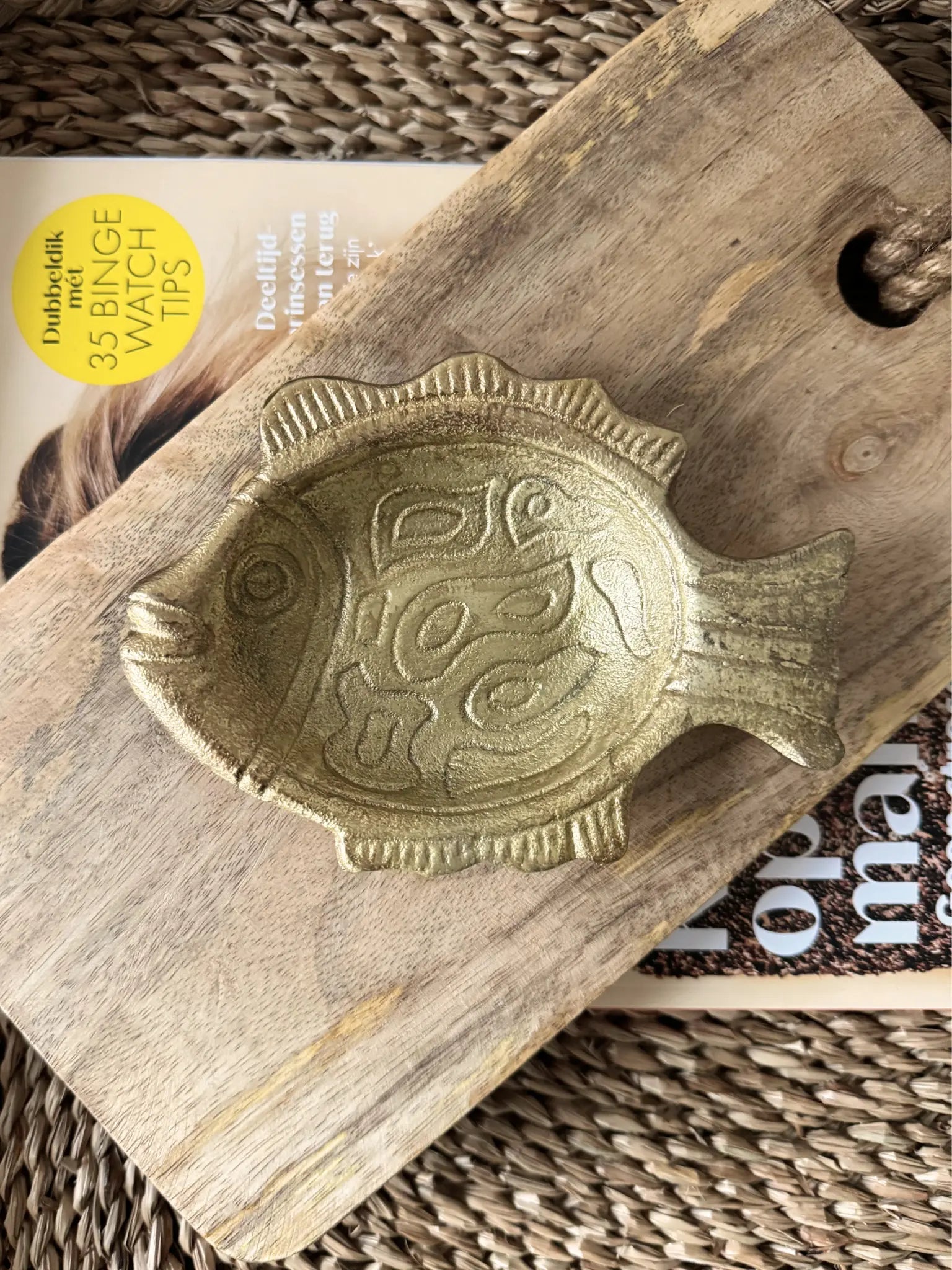 Dit schaaltje in de vorm van een vis is een vrolijke en speelse toevoeging aan je interieur. De gouden kleur en het subtiele reliëf geven het schaaltje een charmante uitstraling die mooi past op een dressoir, tafel of in de keuken. Je kunt het gebruiken voor sieraden, kleine items of gewoon als decoratief object. Het metaal voelt licht maar stevig aan en brengt een warm en sfeervol accent in huis. Een leuk detail dat meteen een glimlach geeft.