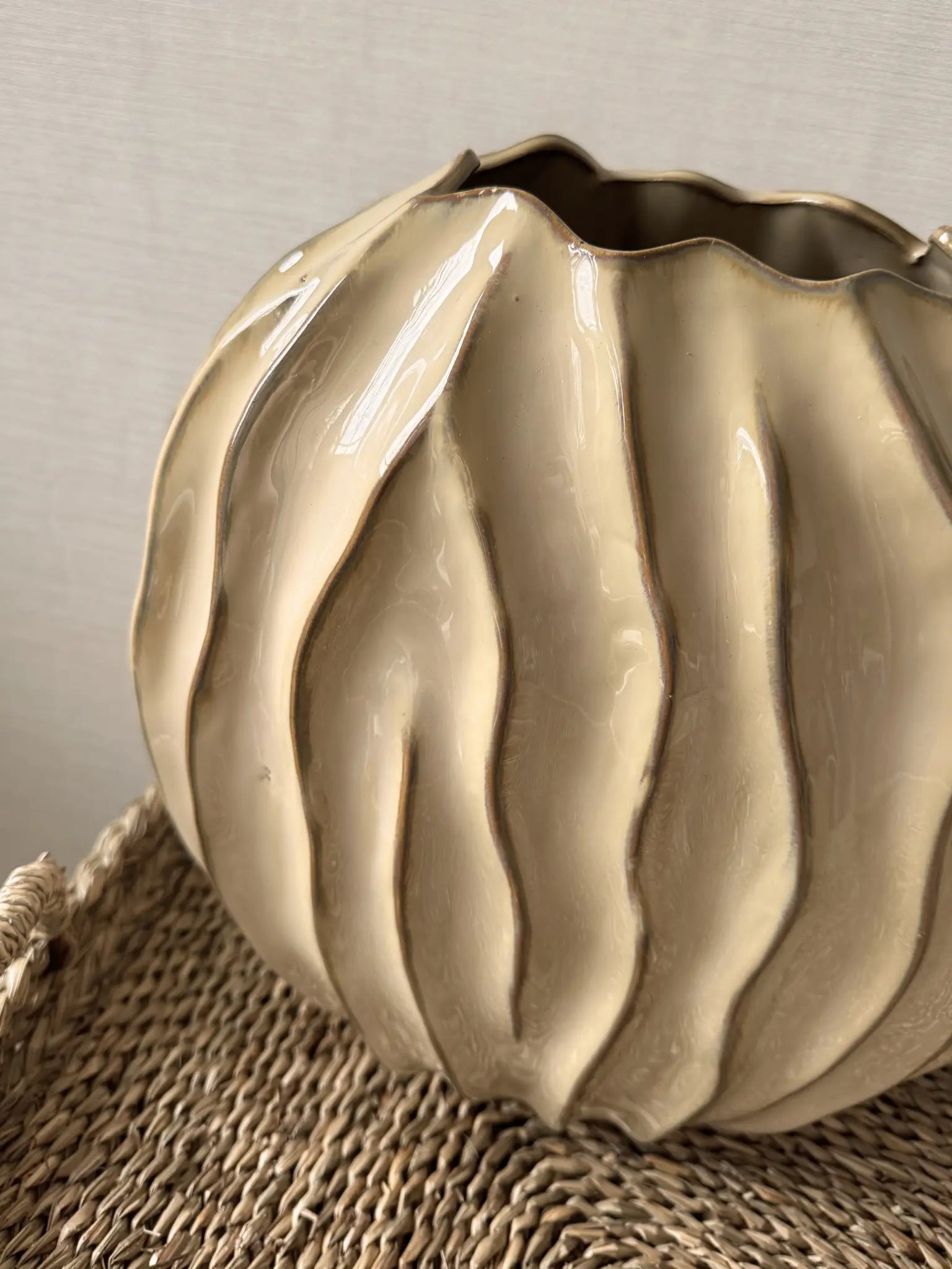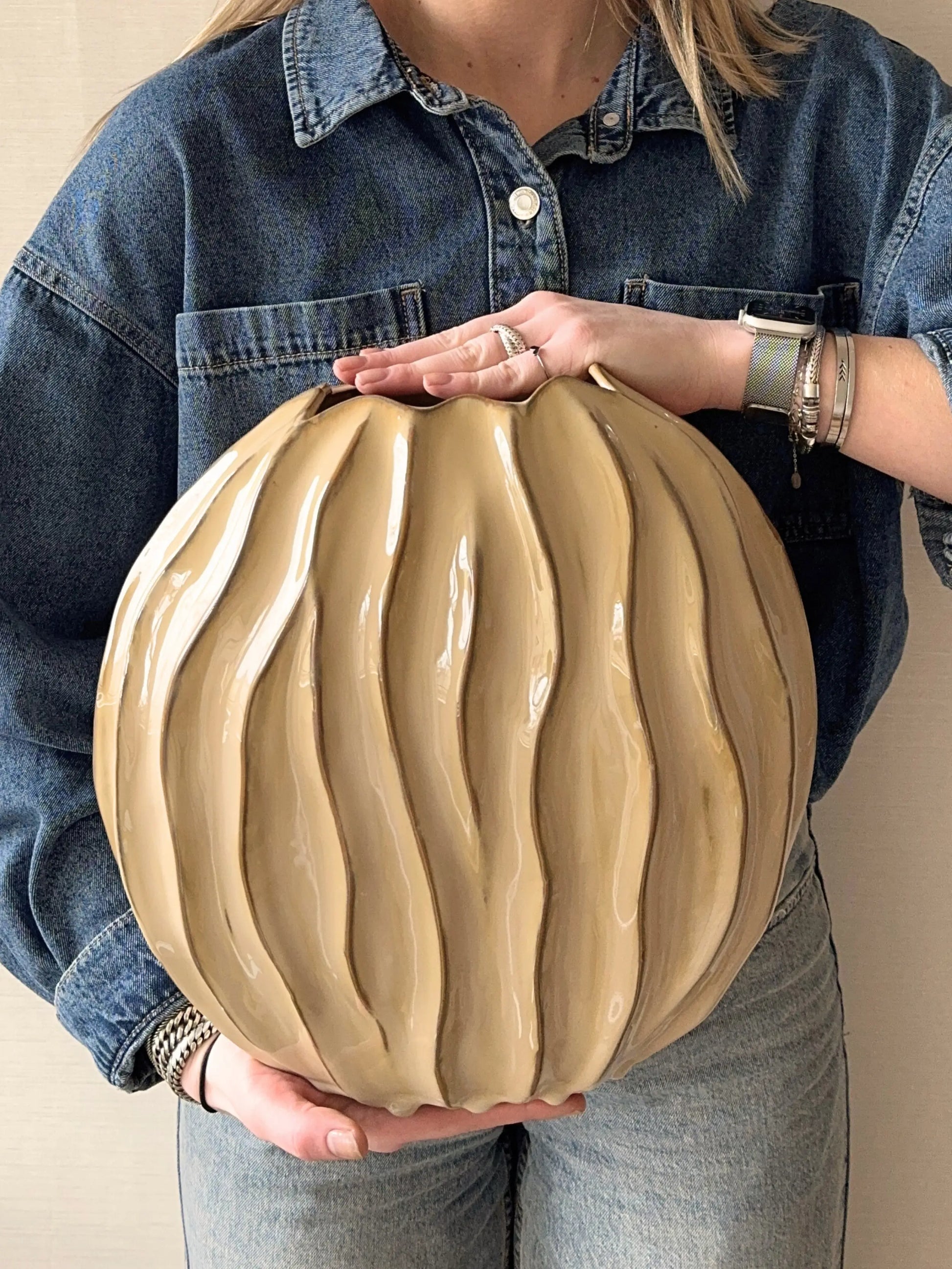 Deze vaas Baron Boulder in crème is een echte statement piece voor je interieur. De organische vorm en royale afmetingen geven de vaas een krachtige maar rustige uitstraling. De zachte crèmekleur zorgt ervoor dat hij moeiteloos past in verschillende woonstijlen en prachtig combineert met natuurlijke tinten en materialen. Mooi om neer te zetten op de vloer, een grote tafel of een dressoir waar hij direct de aandacht trekt. Met een paar lange takken of droogbloemen komt deze vaas helemaal tot zijn recht.